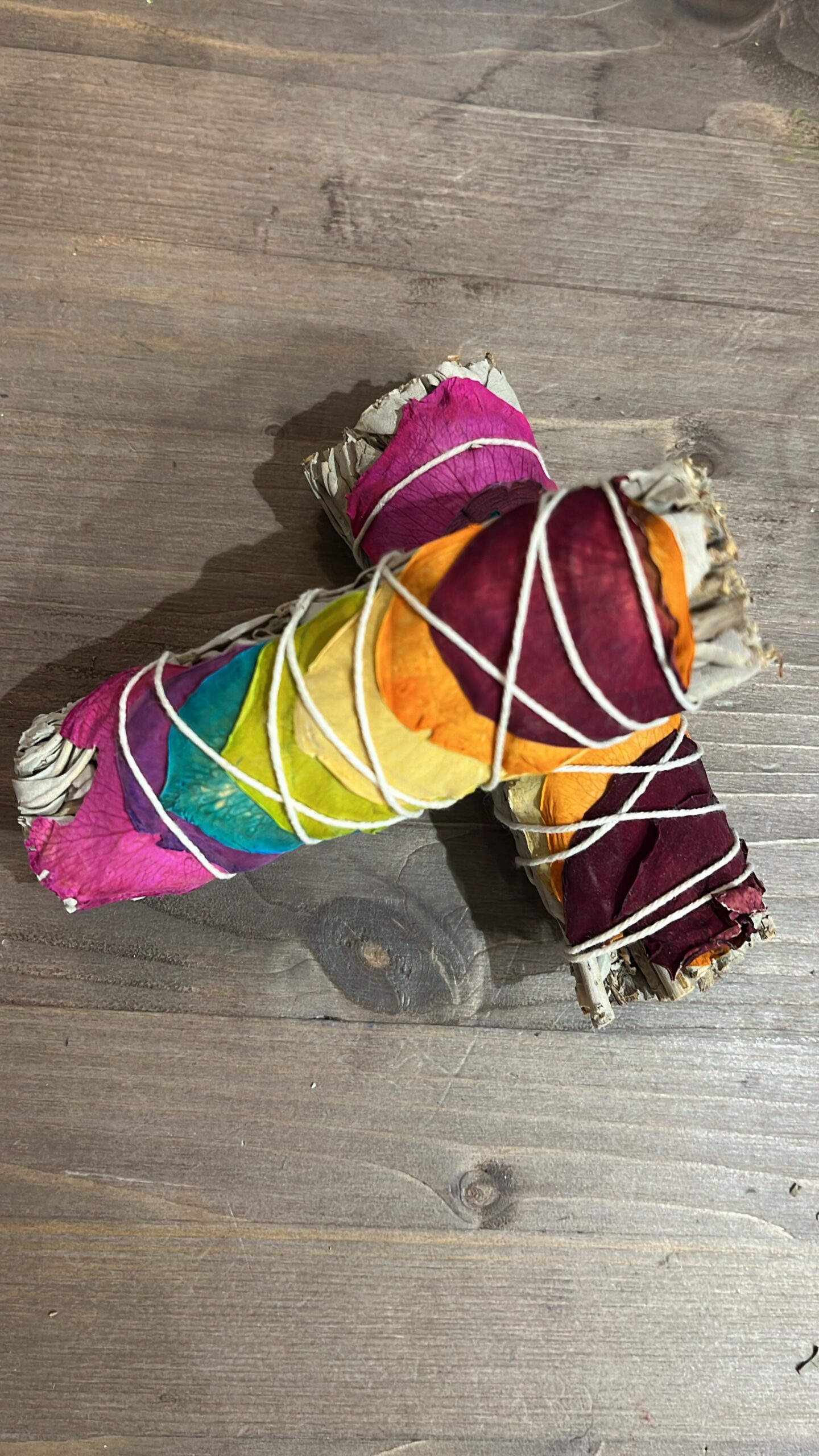 Armoniza tu entorno y equilibra tus chakras con nuestro Atado Purificante de Salvia Blanca y Pétalos de Flor. Este atado de 10 cm, único y natural, combina el poder de limpieza de la salvia con la belleza y la energía de pétalos de flores alineados con los chakras, creando un balance perfecto entre purificación y equilibrio energético.