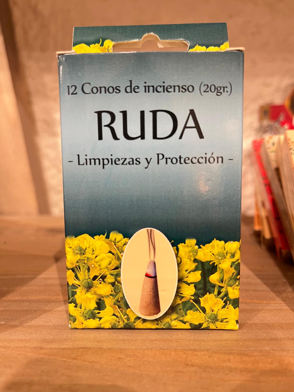El incienso de ruda es capaz de eliminar malas energías, rechaza la magia negra, el mal de ojo y la envidia. Este incienso también es capaz de aportar paz y armonía a los hogares. El incienso de ruda se usa para controlar la mente y para librarse de de maldiciones o hechizos. Esta planta también es beneficiosa para la salud, cuenta con propiedades que son útiles para tratar el dolor de estómago, problemas circulatorios y regula la menstruación.