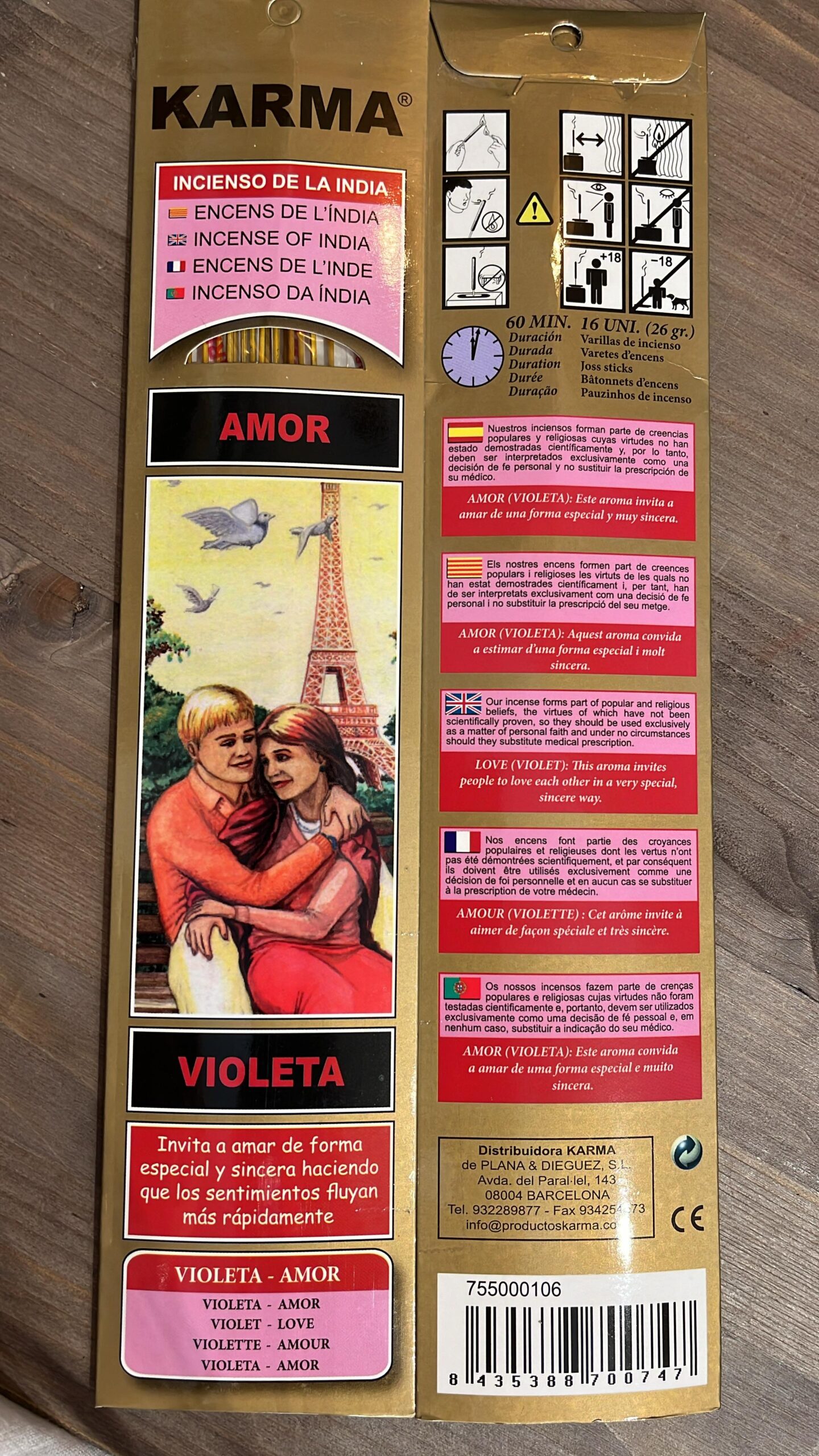 16 varillas de incienso de amor (violeta), 26 gr.
