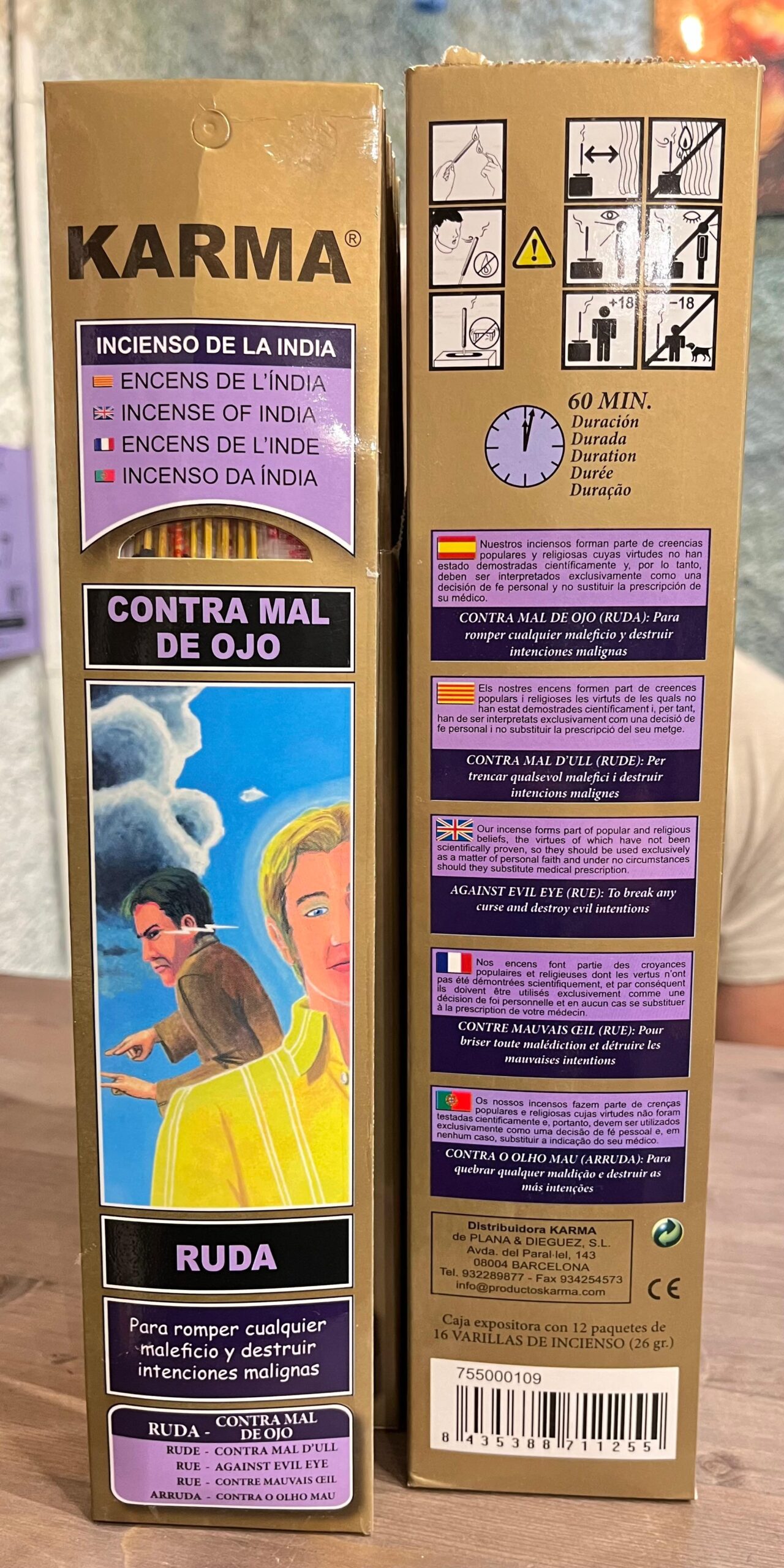 Despídete de las energías negativas y protege tu hogar con el poderoso Incienso Contra Mal de Ojo (Ruda). Este incienso de 16 varillas es la elección perfecta para quienes buscan un escudo contra la envidia y las miradas malintencionadas.