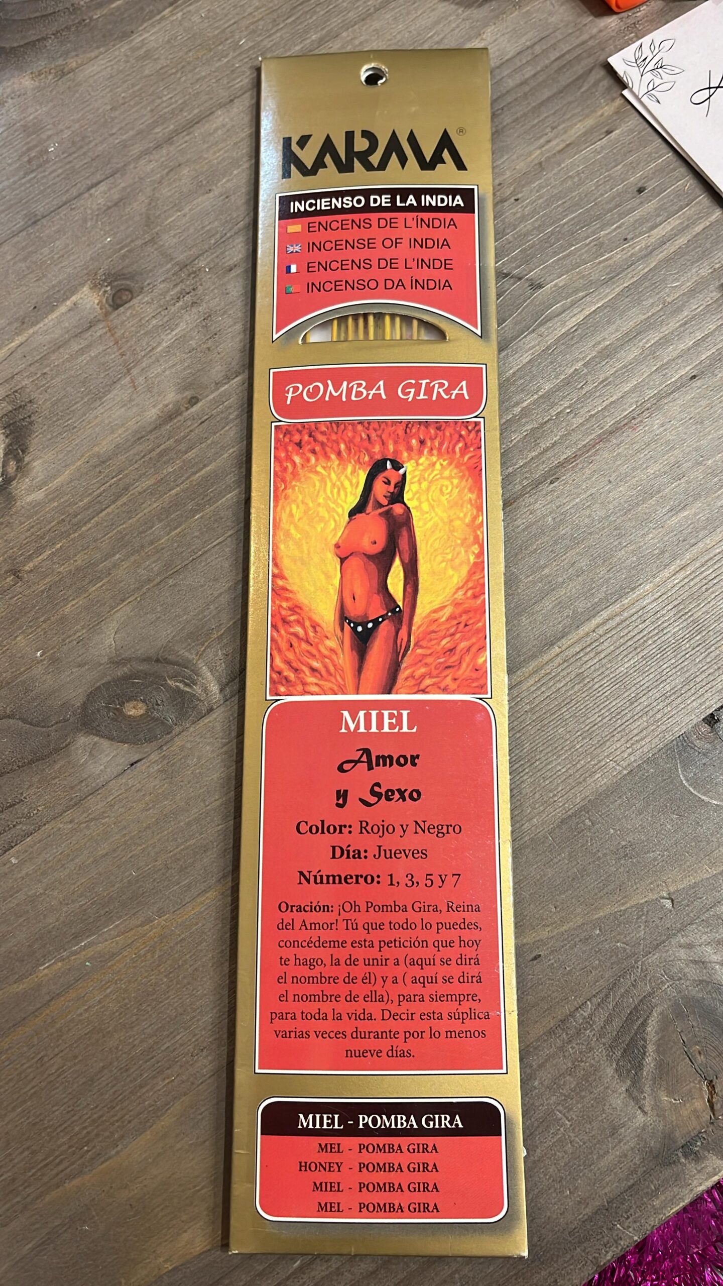 Incienso Karma Pomba Gira. Aroma, miel, amor y sexo.